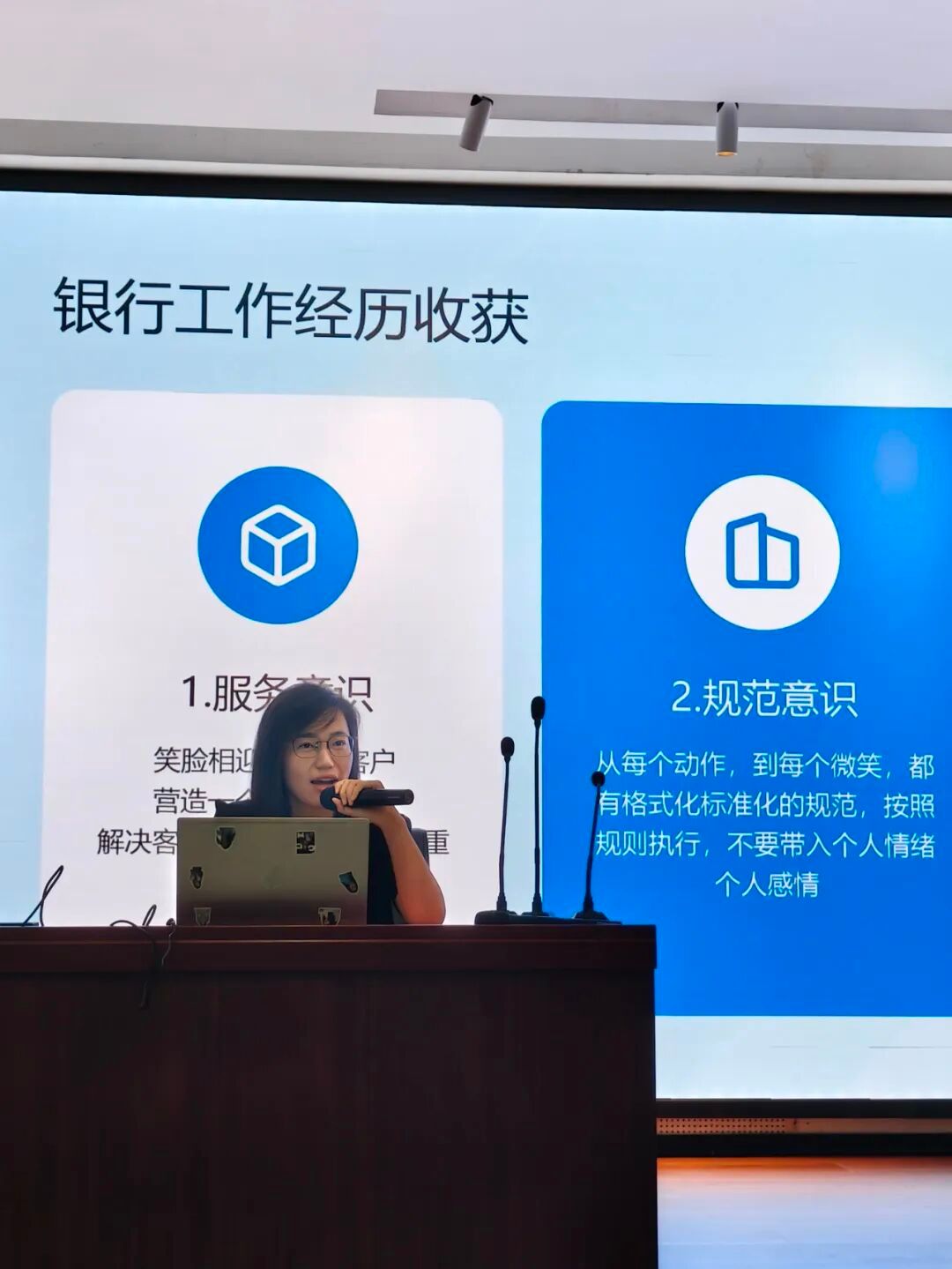 作为宁波大学2025级MBA学员,岑益波以自身职业转型为切入点,讲述了从国有银行管培生到家族企业接班人的成长故事。她曾放弃曼彻斯特大学研究生offer,选择从银行柜员做起,凭借“陪行长扫街发传单”“日均100+客户电话”的拼劲,两年内晋升行长候选人,更收获了服务意识、规范意识与抗拒绝心态三大核心能力。