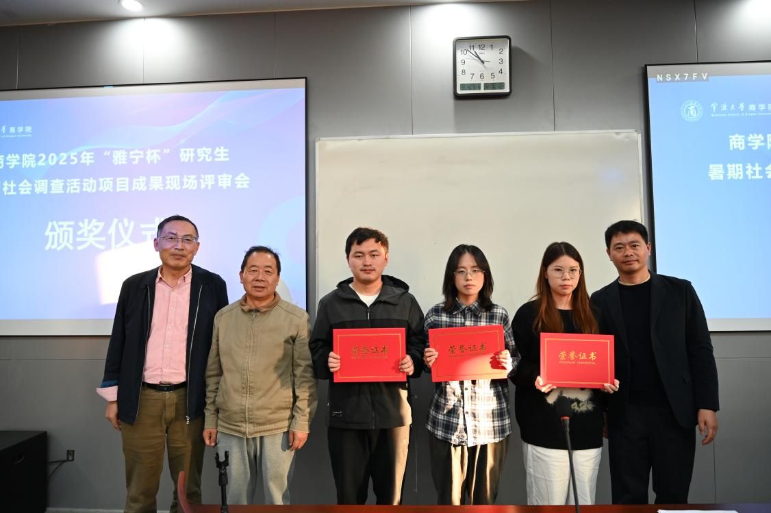 2025年10月24日下午,体育博彩 2025年“雅宁杯”研究生暑期社会调查活动项目成果现场评审会在体育博彩 525教室顺利举行。此次评审会由商学院副院长陈涛主持,雅戈尔集团人力资源部副经理兰杰、宁波大学研究生工作部副部长杨厦、体育博彩 党委副书记吴敏、体育博彩 丁元耀教授、体育博彩 张聪群教授担任评审专家。
