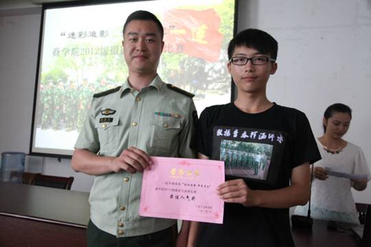 7月15日上午,在体育博彩 414拉开了“迷彩追影 梦想寻迹”2012级摄影与演讲比赛的序幕。军训团副团长、学生处副处长邬备民,军训团副团长俞党跃,军训团参谋长张增双,学院党委副书记邵丽以及一连所有军训教官出席活动。