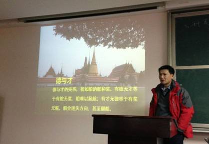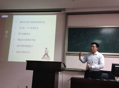 2013年12月8日晚,体育博彩 第十四期业余团校选修模块一之“往昔学干精英,今朝职场新人” 大学生职业生涯规划交流会在体育博彩 418教室举行。