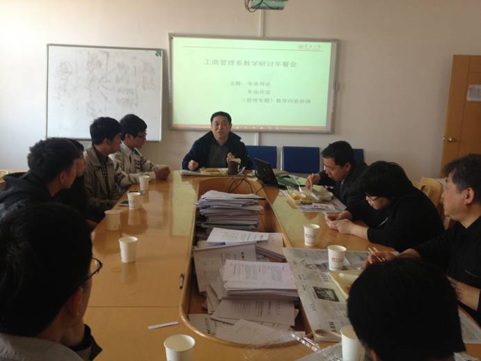 体育博彩 工商管理系于4月14日举行了“教学工作午餐会”,会议由体育博彩 副院长,工商系系主任张聪群教授主持,体育博彩 院长熊德平教授和工商系教师和学生代表参加。会上,熊院长就工商系专业建设思路同与会师生进行了探讨。随后,在张聪群教授的主持下,与会师生共同研讨了工商管理专业、市场营销专业导论课程的拍摄方案和拍摄计划,专业分流宣传工作计划以及下学期《管理专题》课程主要授课内容。