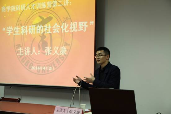 4月2日晚,体育博彩 科研人才训练营第二讲“学生科研的社会化视野”在学院414报告厅顺利开讲。本期训练营邀请了校团委书记张义廉担任主讲人。训练营学员近百人参加本次活动。