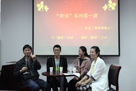 2014年4月25日下午,体育博彩 “对话”系列第一讲我是“最美商院人”在体育博彩 414隆重举行。体育博彩 院长熊德平、党委书记袁虹、副书记邵丽等领导出席了此次活动。