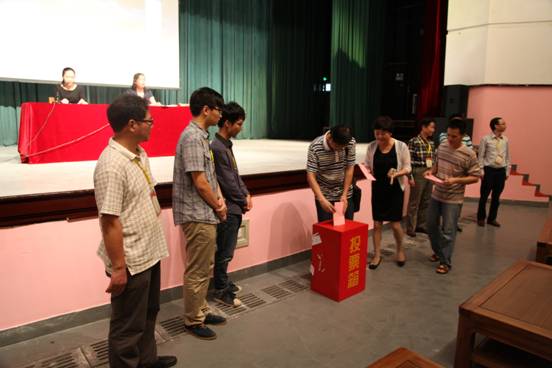 会议全体表决通过中共宁波大学第三次代表大会代表选举办法草案以及监票人名单。随后,院党委书记袁虹宣读候选人名单,并就候选人基本情况做了简单介绍。最后,全体党员通过无记名投票方式选举产生代表我院全体党员出席中共宁波大学第三次代表大会的代表共11名,其中校党委提名代表1名,教师代表8名,学生代表2名,他们分别是:校党委提名代表:陈厥祥,教师代表:丁元耀、杨丹萍、张向群、张聪群、陈钧浩、邵丽、袁虹、熊德平,学生代表:黄文功、蒋爽。(按姓氏笔画为序)