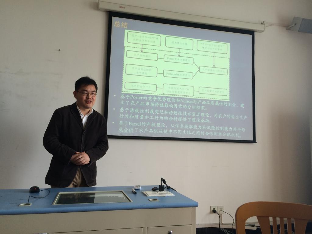 为及时总结和分享学术论文撰写与项目申报经验,适时动员和推进浙江省自然科学基金等项目的申报工作,2015年5月6日上午,主题为“农产品供应链研究:合作绩效与剩余分配”的学术沙龙和课题申报经验交流会,在体育博彩 523会议室如期举行。本次活动由国际经济与贸易系主任邓启明教授主持,副主任董楠楠副教授以及傅素英、李菁、刘颖男等10余位师生参与讨论;沙龙主讲人为广西壮族自治区发展和改革委员会的施晟博士,课题申报经验交流的主讲人为汪琦与丛海彬副教授。