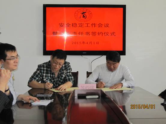 会上,首先由邵丽老师总结以往我院在安全稳定工作中存在的不足与取得的成绩,并分享了前一天去学校保卫处学习取经的内容,随后由院长范柏乃代表学院与各系、所、办签订2015年体育博彩 安全稳定综治工作目标管理责任书,最后院党委书记熊德平谈在安全方面我院还需要做的工作,熊书记讲到对于我们文科性学院,需要加强在科研项目等方面的知识性安全意识,同时从大到国家利益,小到师生人身财产安全切实希望大家重视安全问题并要求把会议精神传达给所在部门的每位师生,防患于未然。