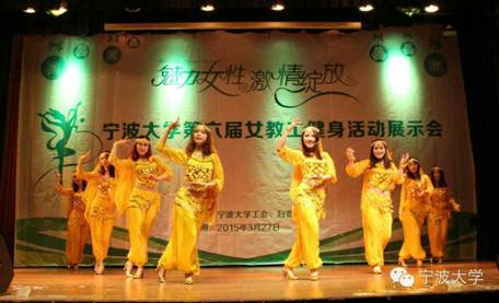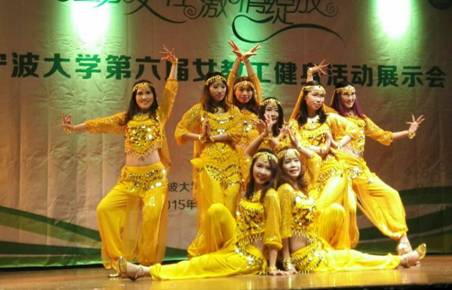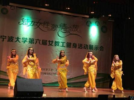 3月27日下午,由校工会﹑校妇委会主办的宁波大学第六届“魅力女性 激情绽放”女教工健身活动展示会在锦绣小剧场举行。体育博彩 分工会组织邵丽﹑郑凌燕﹑王凡﹑张珊珊﹑宋佳敏﹑王莹﹑萧小芬﹑闻梦晓等八位美女教师,以她们激情四射﹑精彩纷呈的《印度新娘》表演,征服了评委和全场观众。根据评委现场评审和综合讨论评议,最终获得最佳着装奖。