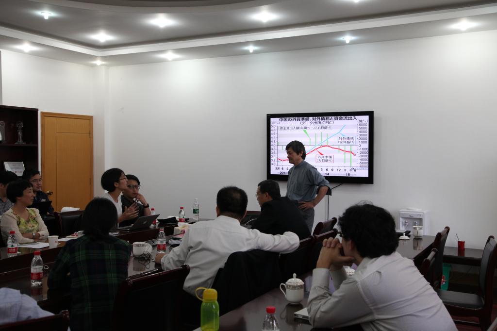 10月26日下午,体育博彩 科研下午茶2015第16期在体育博彩 11号楼412室如期举行。本次研讨会主题是“中日经济发展及人民币国际化问题探讨”,主讲嘉宾是日本东京大学教授柳田辰雄(Tatsuo Yanagita),上海交通大学安泰经济与管理学院院长助理赵一飞博士等陪同参加本次研讨会。研讨会由我院杨丹萍副院长主持,国贸系叶劲松副教授、金融系系主任燕小青副教授以及赵丙奇教授等20余位师生参加了本次活动。