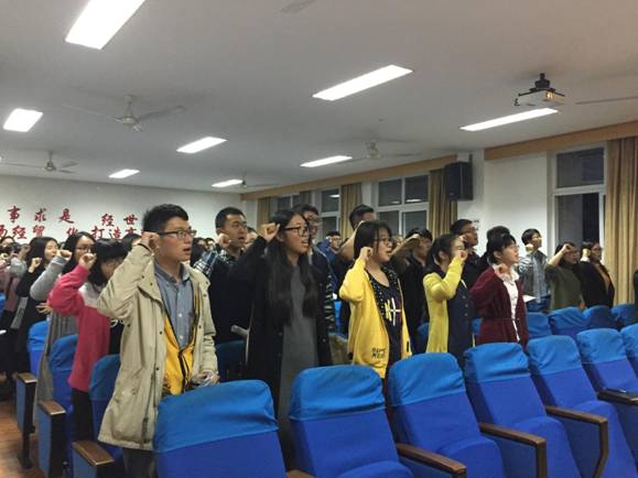 2015年11月17日,体育博彩 第十六期业余团校正式开幕。下午5点整,本期团校开班典礼在体育博彩 414报告厅隆重举行,共有140多名学员参加了开班仪式,体育博彩 团委书记王凡老师出席并致辞。主持人施庭昱同学对本期团校的各平台课程的主要内容进行了概括总结,介绍了本次团校的特色以及修读流程,带领学员们重温入团誓词。随后,王凡老师提出学生干部要实现两个结合,好高骛远和脚踏实地相结合,眼睛向外和眼睛向内相结合,希望团校学员能牢记自己的责任,珍惜团校学习的机会,积极参与社会实践,提升团干工作能力和服务水平。