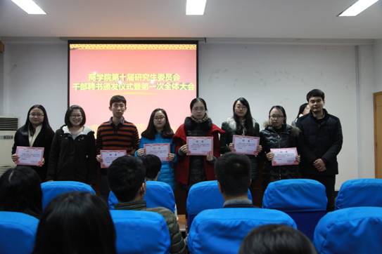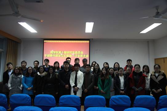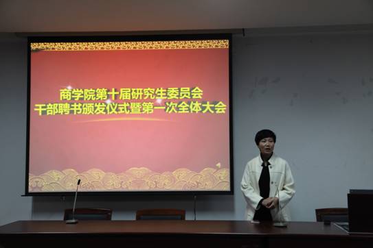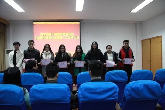 12月23日下午,体育博彩 第十届研究生委员会干部聘书颁发仪式暨第一次全体大会在学院414室举行。院党委副书记邵丽、院第十届研究生委员会秘书长陈彬、院第十届研究生委员会主席团成员、各部门正副部长及部长助理出席本次活动。