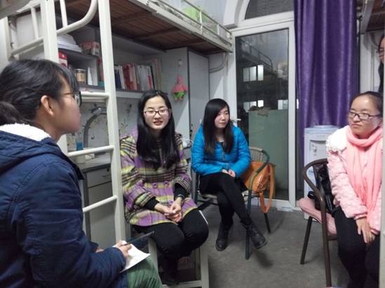 寝室四人在大一的时候就全都认识,到现在为止气氛都很好,特别热闹。在科研方面,四人之间常常会交互组队参加项目,在闲暇的时候,大家也会一起愉快的刷个剧,晚上一起散步,看看中外名著。在她们的心里,只要四个人在一起就是最有意思的一件事。