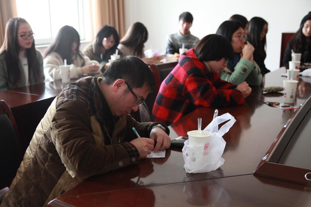 2015年12月31日中午,体育博彩 助理学期工作总结交流会在体育博彩 412会议室举行。学工办副主任汪杰峰和各办公室学生助理参加了此次交流会。此次交流会由学工办主任董璐主持。