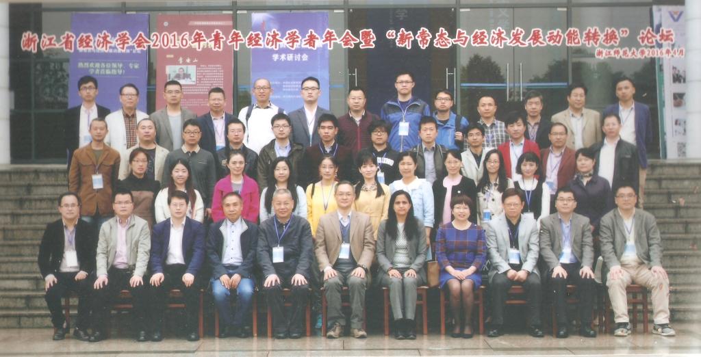 浙江省经济学会2016年青年经济学者年会暨“新常态与经济发展动能转换”论坛于2016年4月24日浙江师范大学召开。国贸系楼朝明副教授和体育博彩 张林姣硕士生参加了这次学术会议。