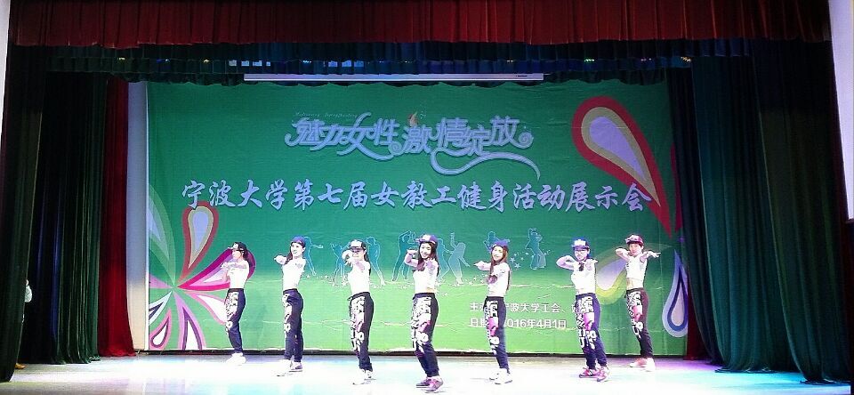 2016年4月1日下午,宁波大学第七届女教工健身活动展示会在锦绣小剧场举行,各参赛队伍精彩亮相,现场氛围十分热烈。体育博彩 分工会对本次活动十分重视,经过长达3个多星期的中午排练、磨合,学院党委副书记邵丽老师带领学院七位年轻教师(董璐、郑凌燕、宋佳敏、王莹、潘莹莹、闻梦晓、陈彬)在展示会上激情表演了《燃烧吧蔬菜》舞蹈,活力四射的舞蹈赢得了现场观众一片喝彩声。根据评委现场评审和综合讨论评议,第七届女教工健身活动展示会成绩揭晓,体育博彩 分工会《燃烧吧蔬菜》荣获单项提名奖。