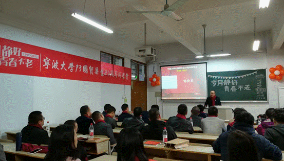 下午,同学们身披红围巾和佩戴纪念徽章整齐的坐在昔日的教室里,13点30分同学会正式开始。时隔二十年后再一次以班会形式聚集在一起,重温青春影集,重拾往日记忆,大学期间亲切而温暖的情谊又渐渐浮上心头。